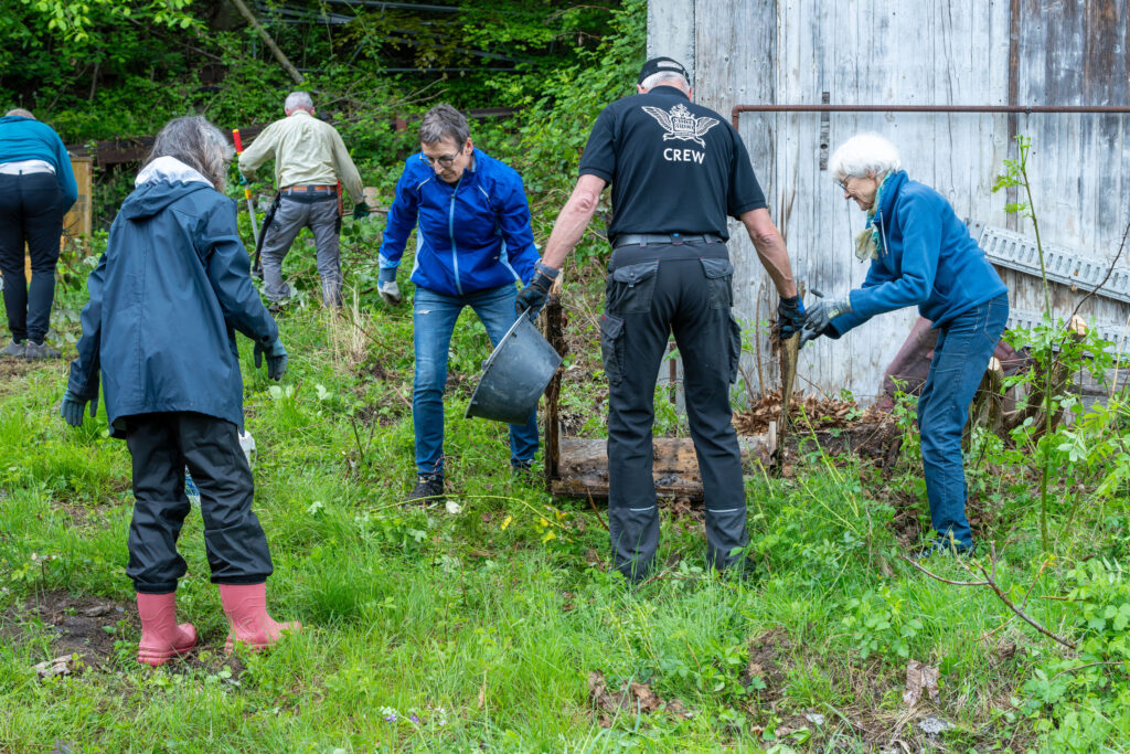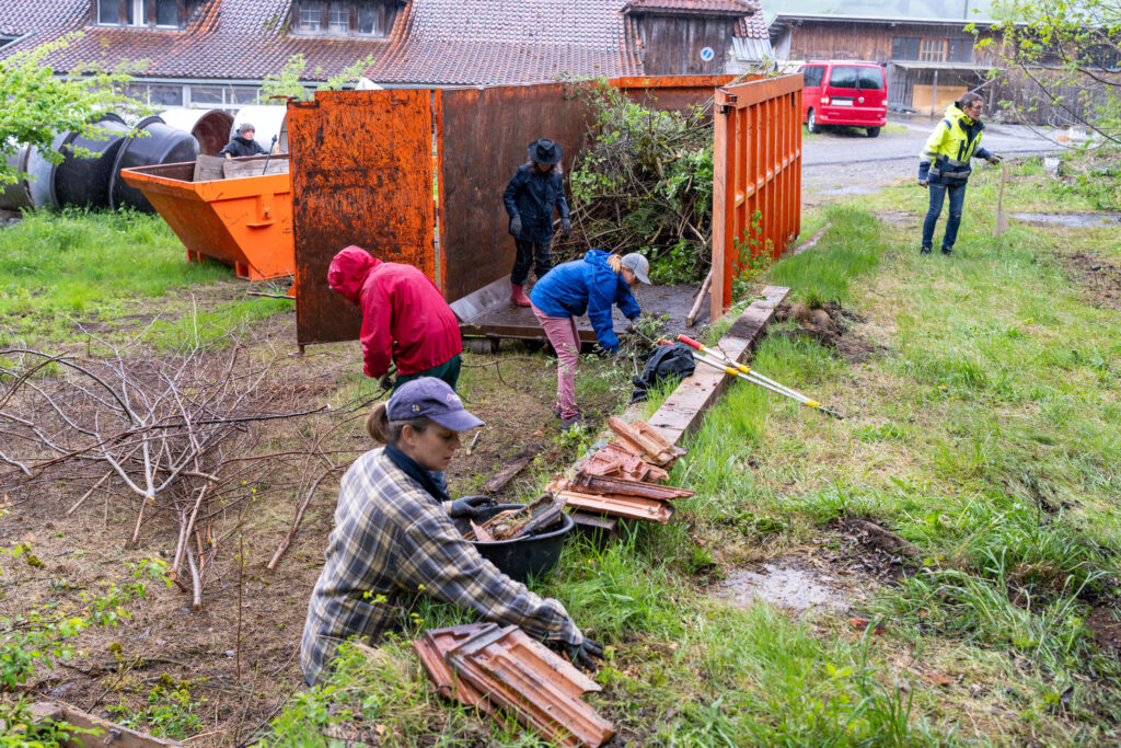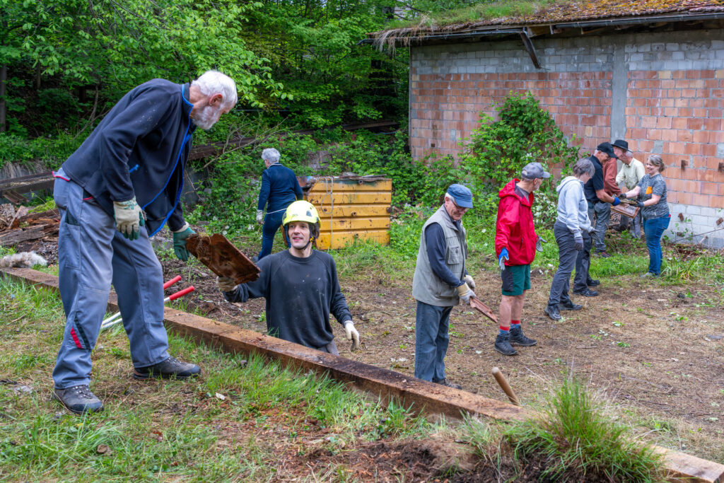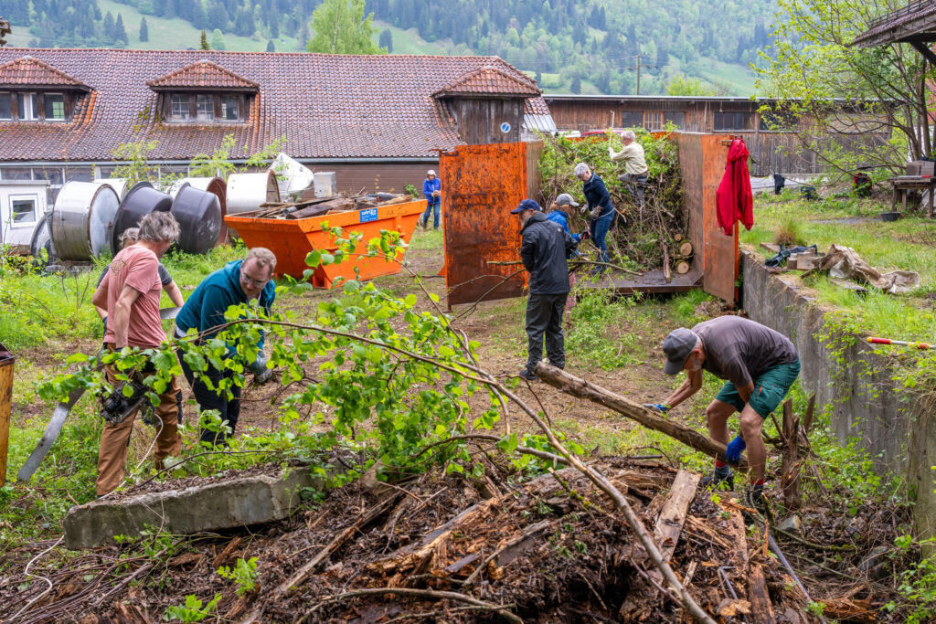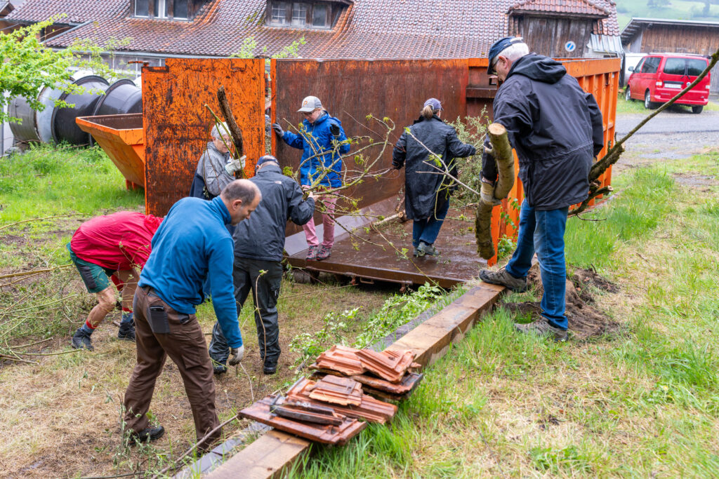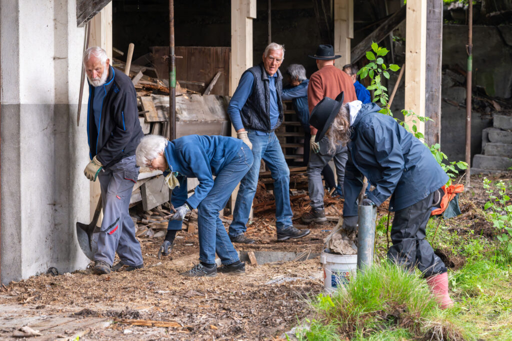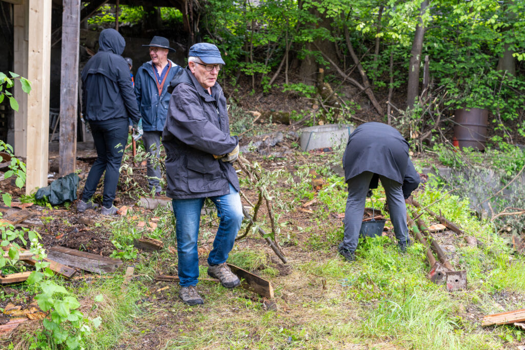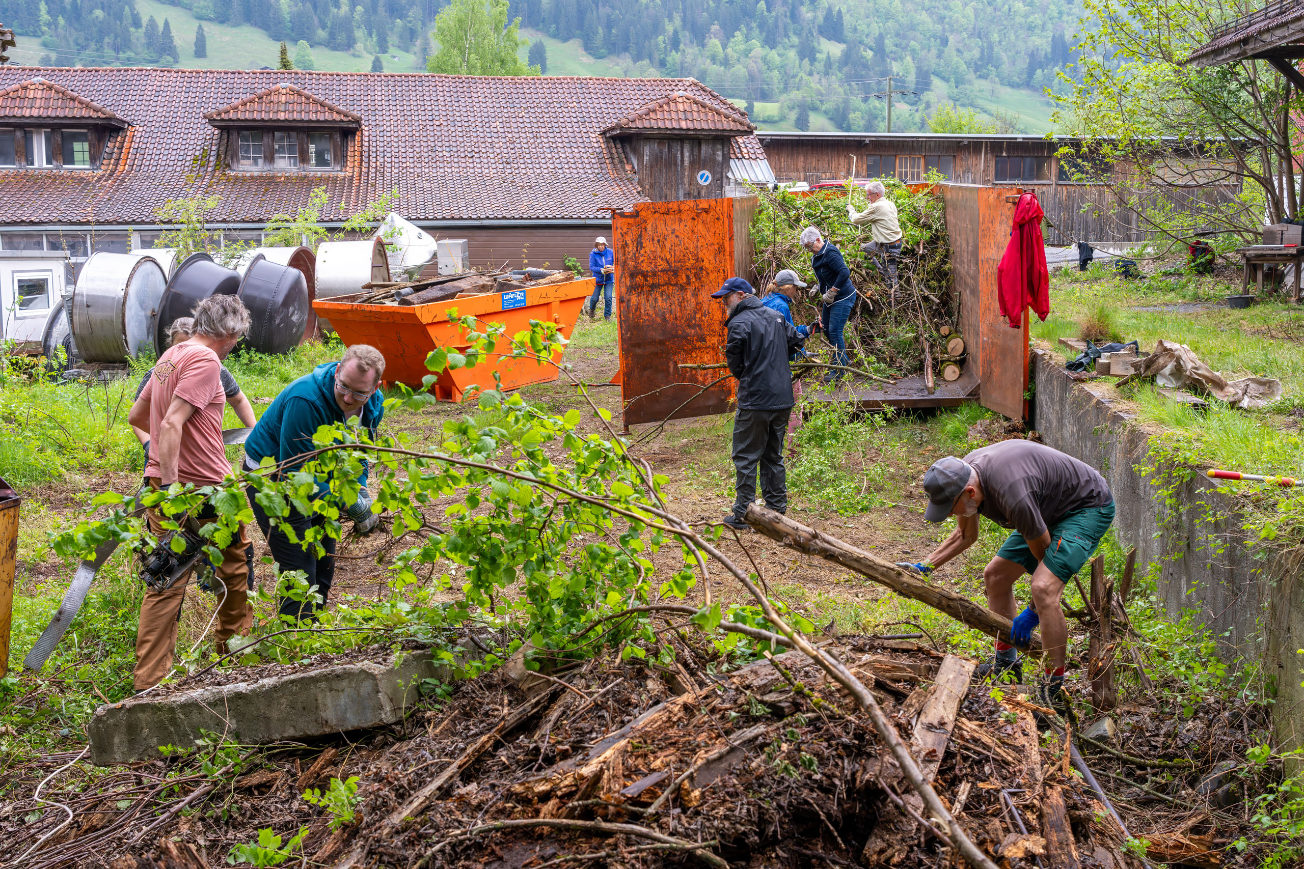 Rund dreissig freiwillige Helferinnen und Helfer haben am Samstag, 3. Mai, auf dem brachliegenden Gelände der Firma Seeberger & Jordi die zukünftige Bühne des nächsten Freilichttheaters von Grünzeug, Holzlatten Metallstangen und vielem mehr befreit. Dank des grossen Engagements aller war das Werk bereits am Mittag vollbracht. Mit einem gemütlichen Mittagessen wurde der grosse Arbeitseinsatz belohnt und der erste Schritt zur Realisierung des Bühnenbildes war getan.