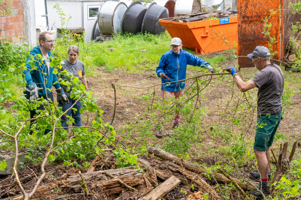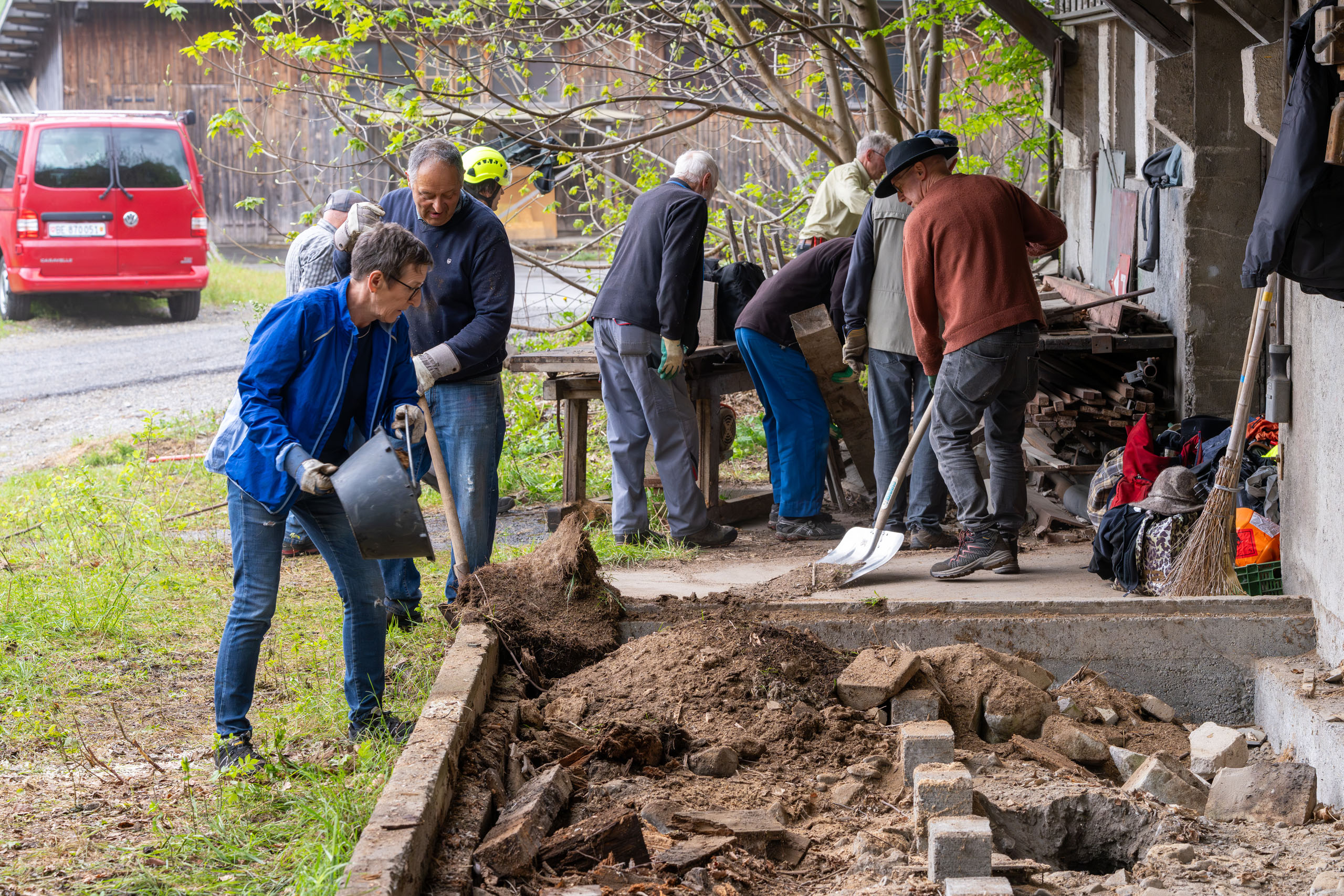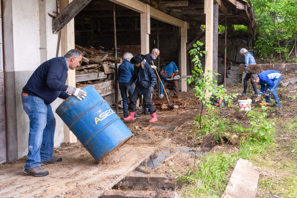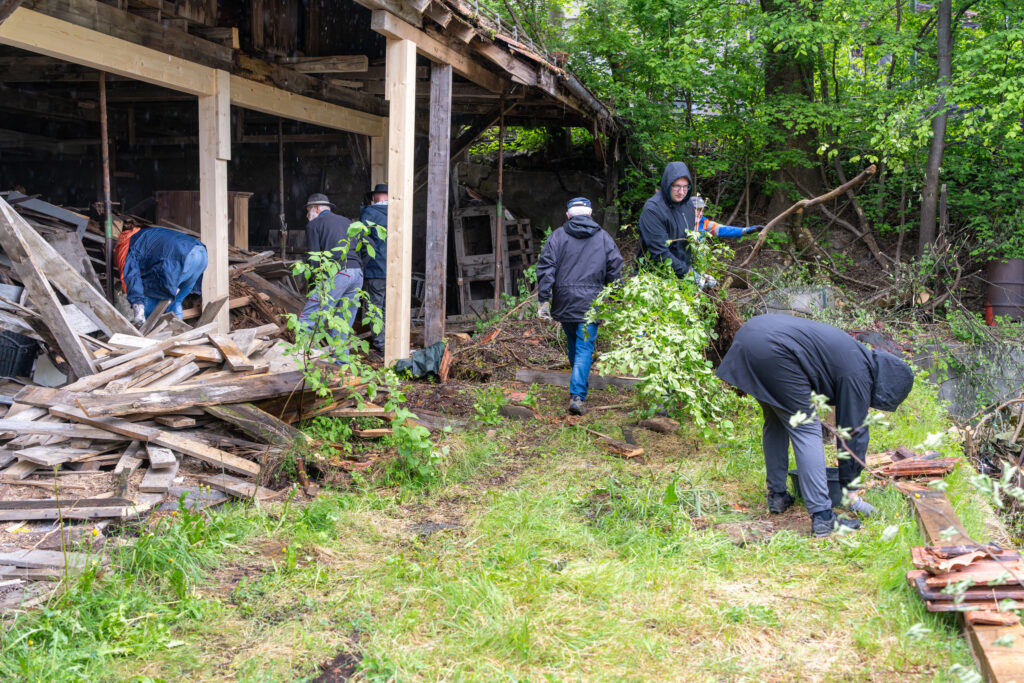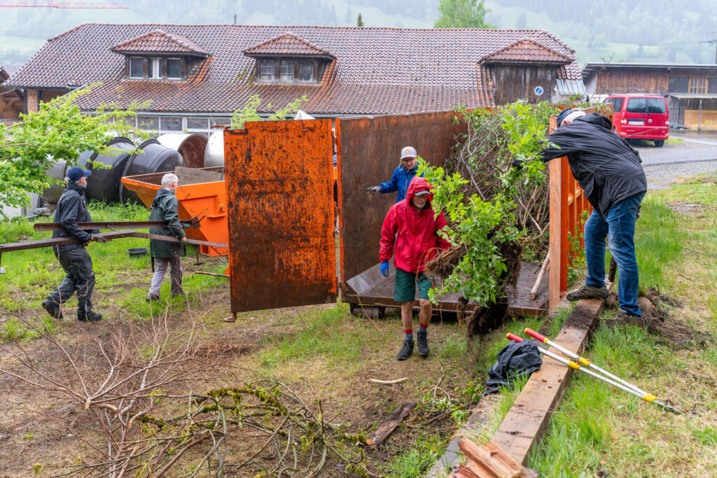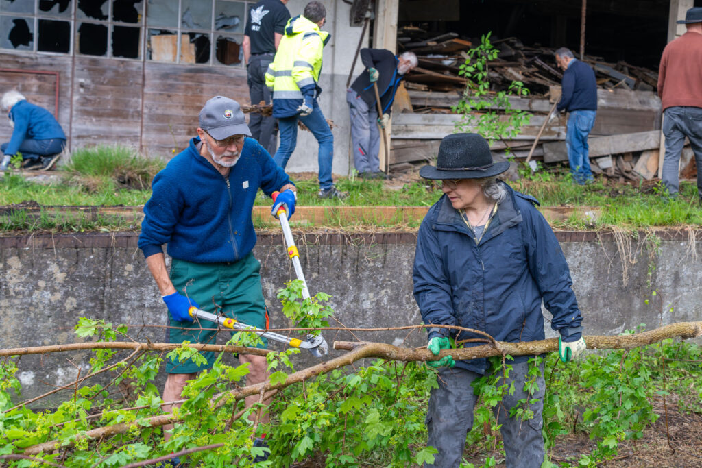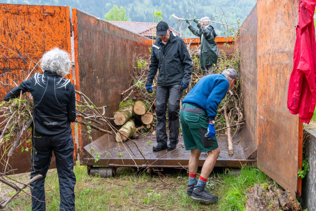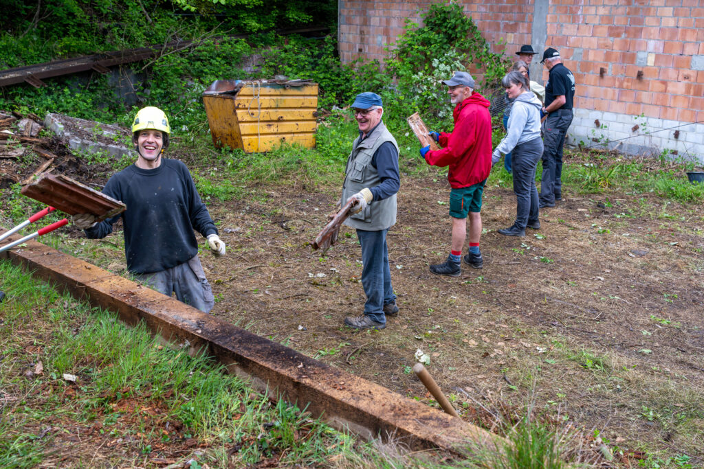Rund dreissig freiwillige Helferinnen und Helfer haben am Samstag, 3. Mai, auf dem brachliegenden Gelände der Firma Seeberger & Jordi die zukünftige Bühne des nächsten Freilichttheaters von Grünzeug, Holzlatten Metallstangen und vielem mehr befreit. Dank des grossen Engagements aller war das Werk bereits am Mittag vollbracht. Mit einem gemütlichen Mittagessen wurde der grosse Arbeitseinsatz belohnt und der erste Schritt zur Realisierung des Bühnenbildes war getan.