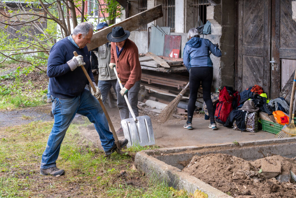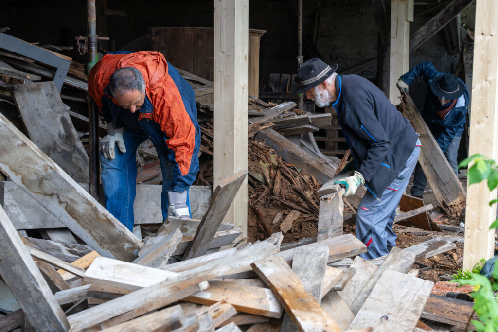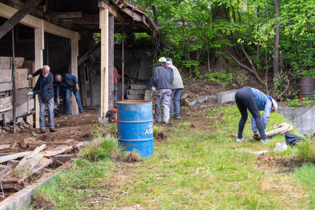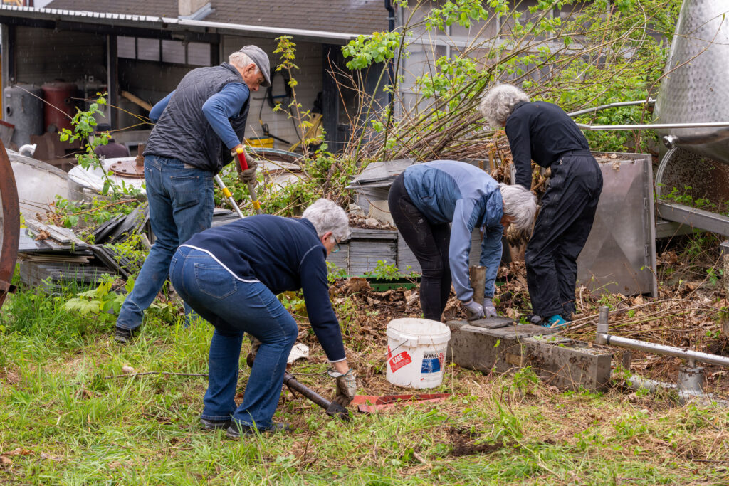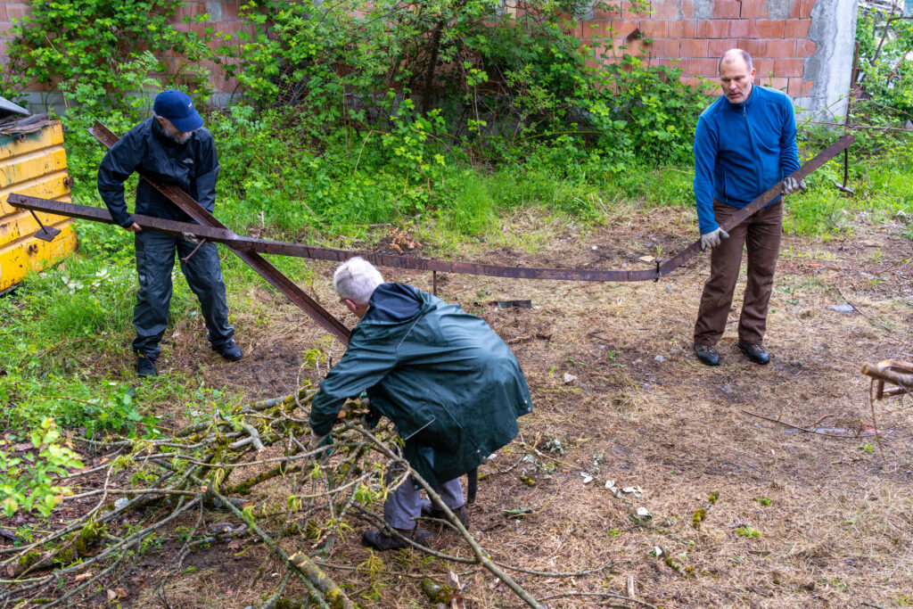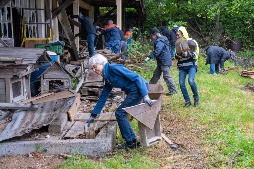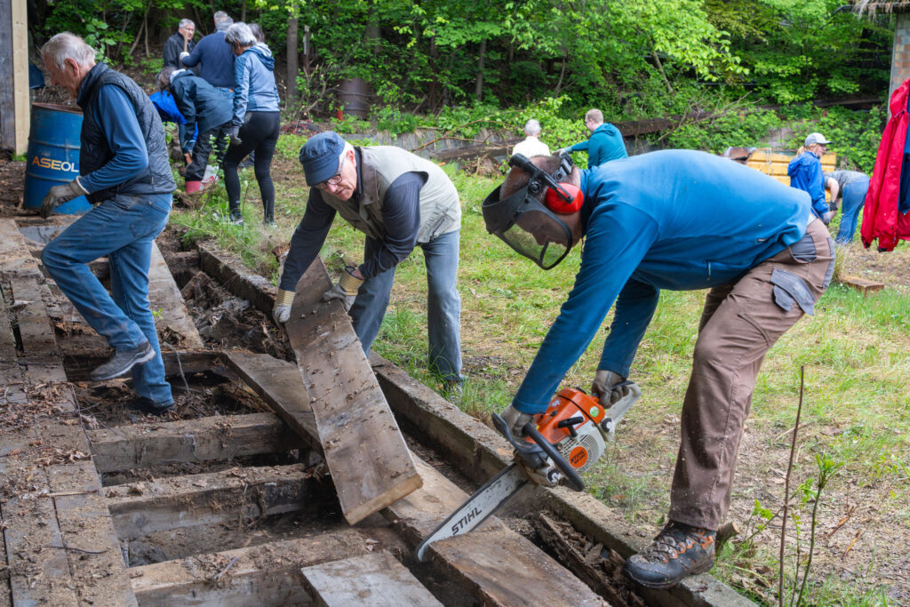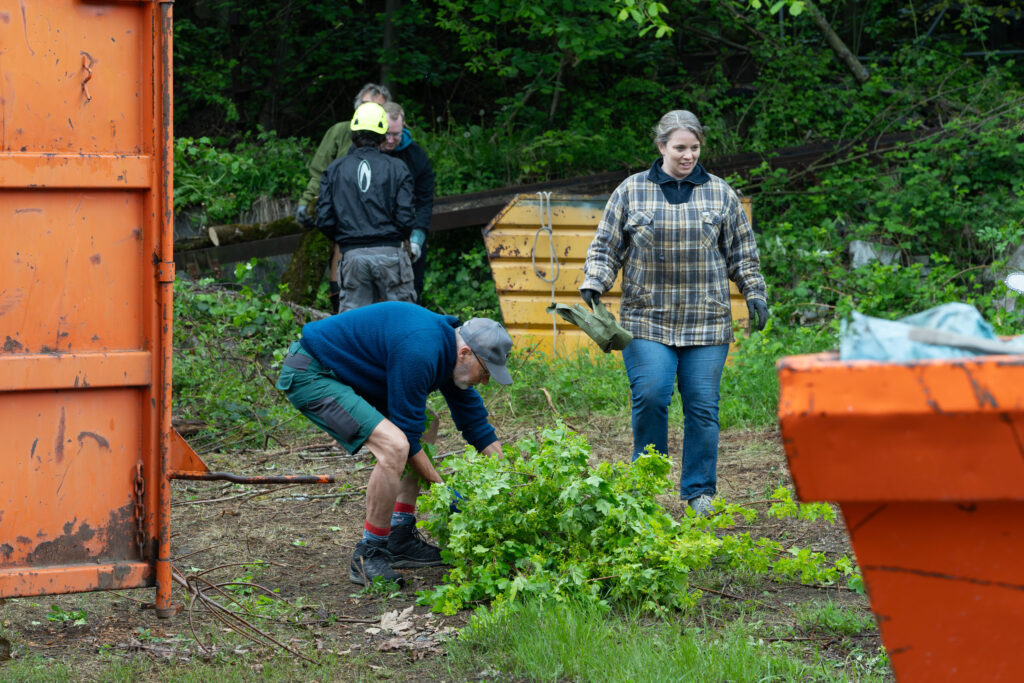 Rund dreissig freiwillige Helferinnen und Helfer haben am Samstag, 3. Mai, auf dem brachliegenden Gelände der Firma Seeberger & Jordi die zukünftige Bühne des nächsten Freilichttheaters von Grünzeug, Holzlatten Metallstangen und vielem mehr befreit. Dank des grossen Engagements aller war das Werk bereits am Mittag vollbracht. Mit einem gemütlichen Mittagessen wurde der grosse Arbeitseinsatz belohnt und der erste Schritt zur Realisierung des Bühnenbildes war getan.
