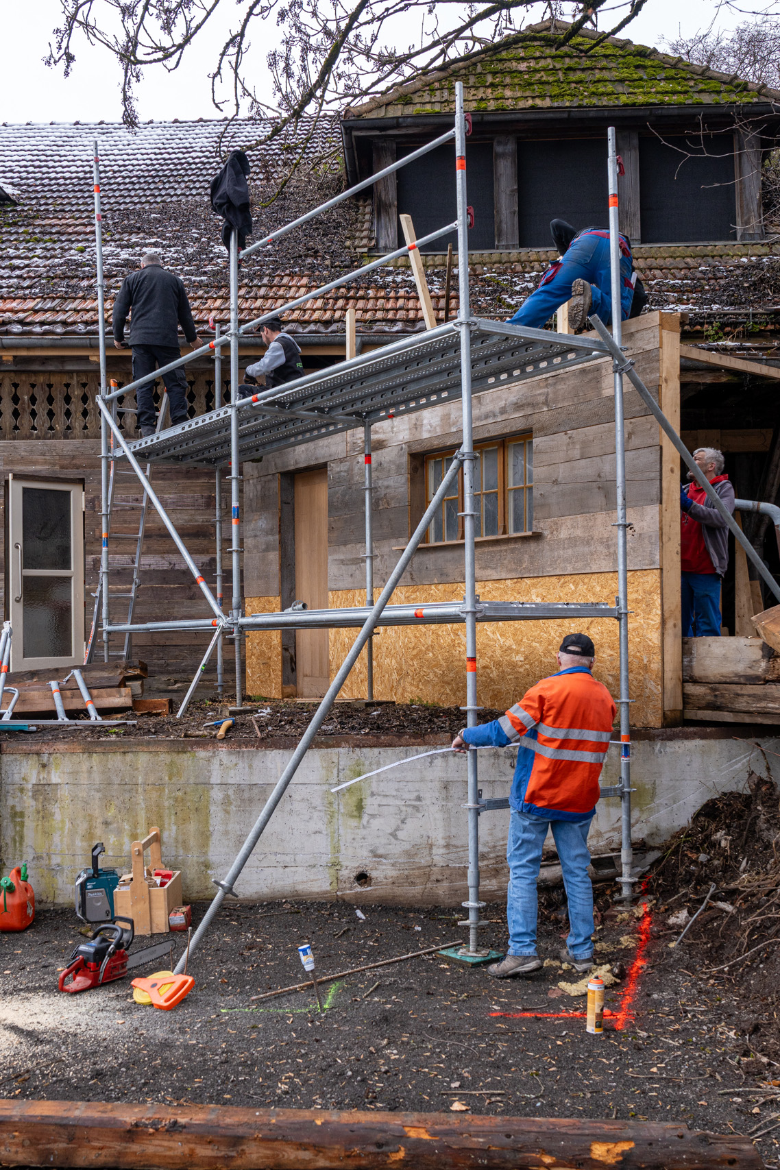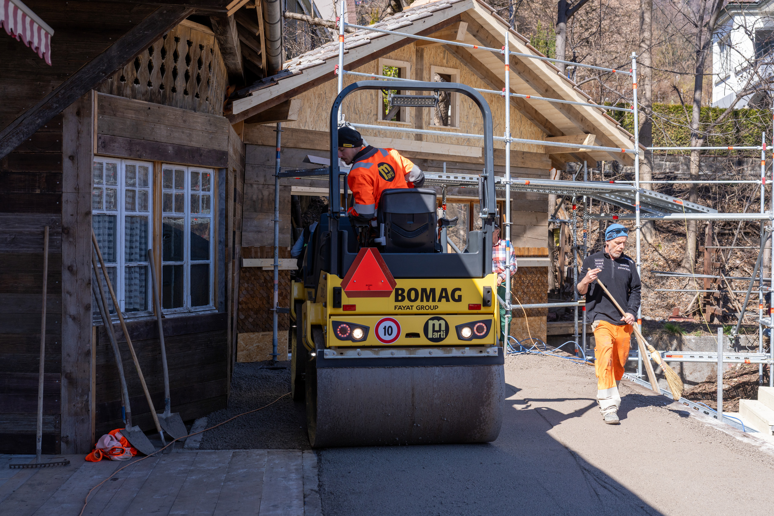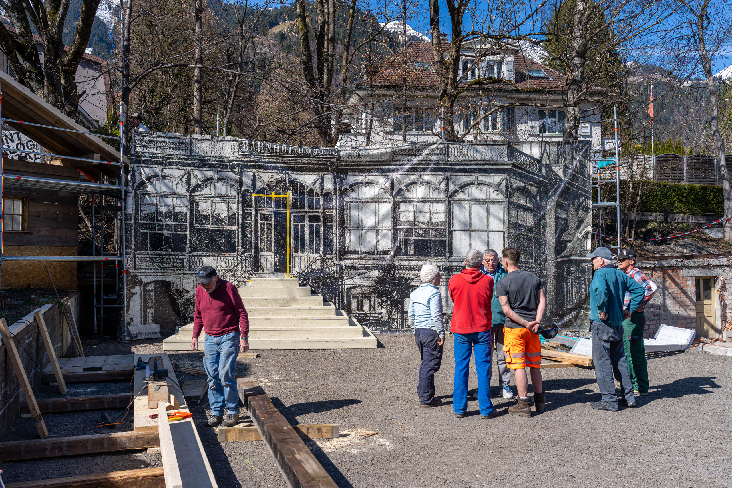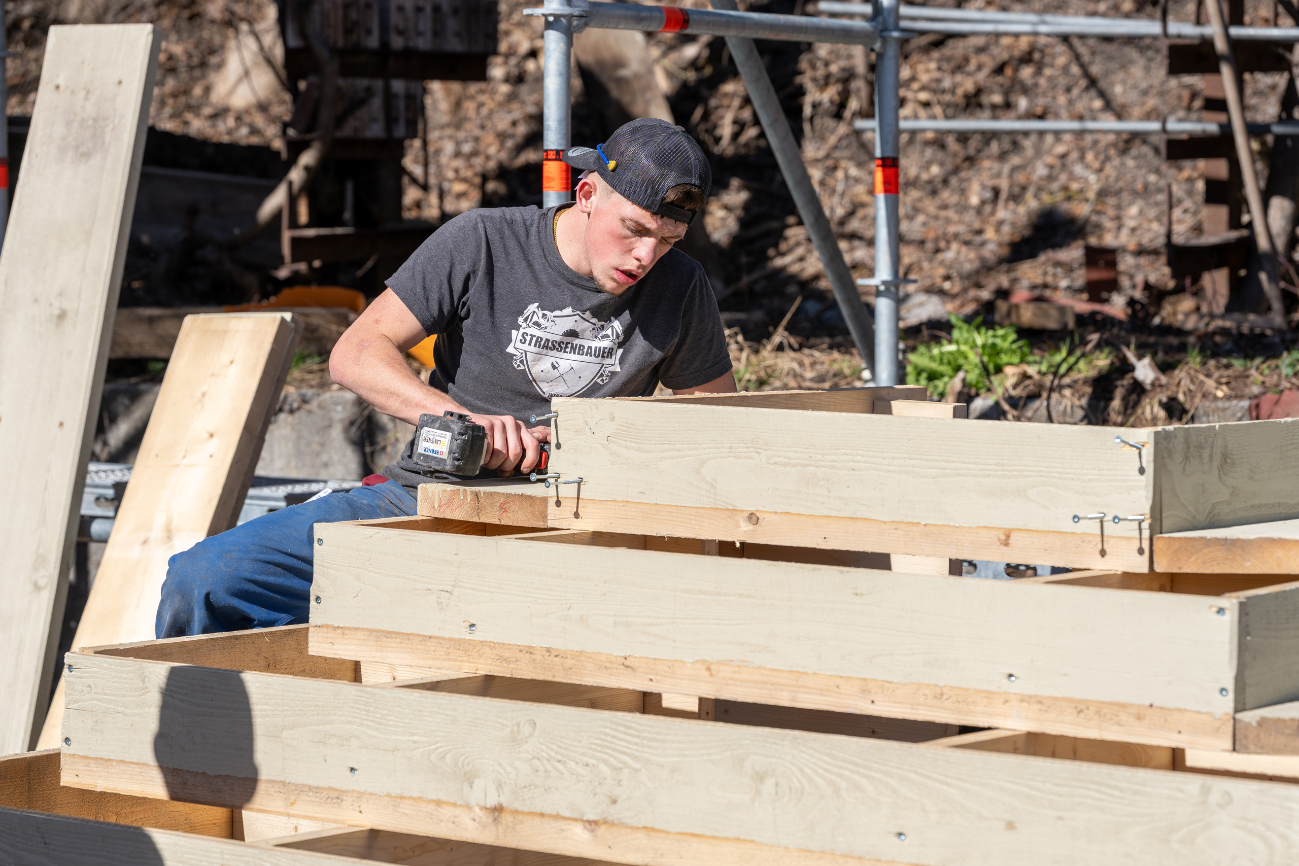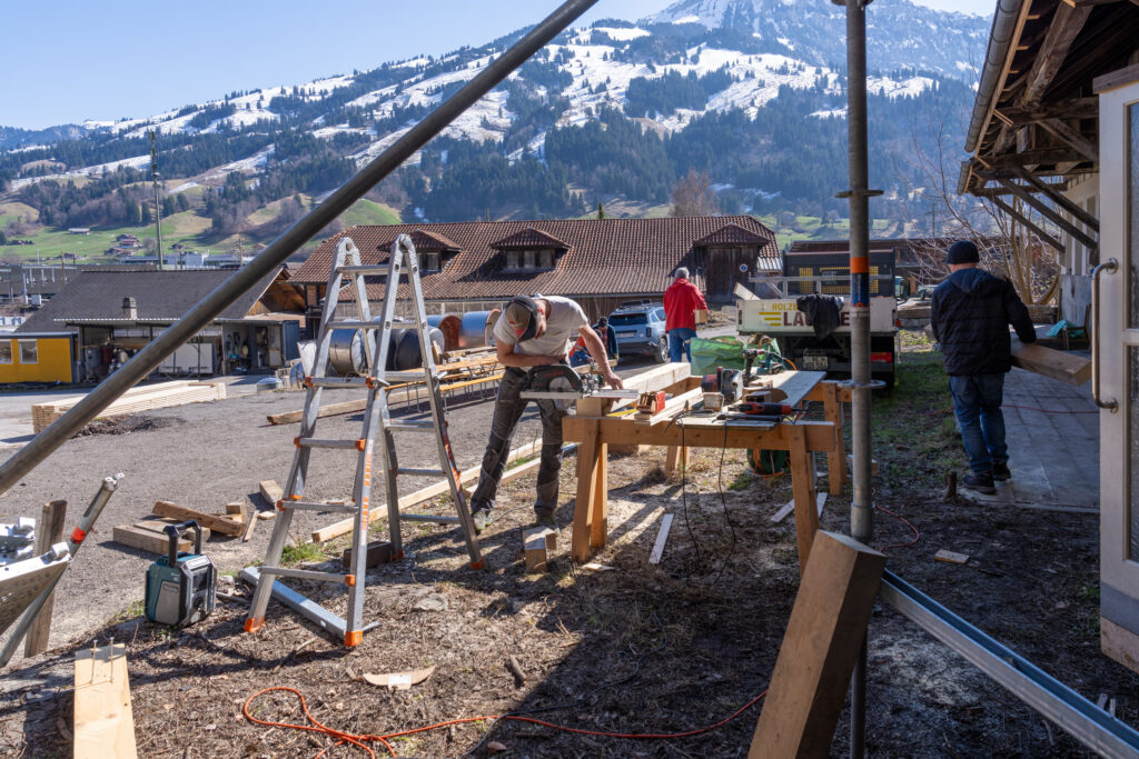 Nach einer intensiven Bauwoche ist das Bühnenbild für das Freilichttheater einen grossen Schritt weitergekommen: Einheimische Firmen und freiwillige Helfende verwandelten den Platz in eine vielseitige Kulisse mit Hotel, Bäckerei, Sportgeschäft und Gemeindehaus. Dank schönem Wetter und starkem Teamgeist blicken alle Beteiligten zufrieden zurück – die Vorfreude auf die Proben und Aufführungen sind gross.