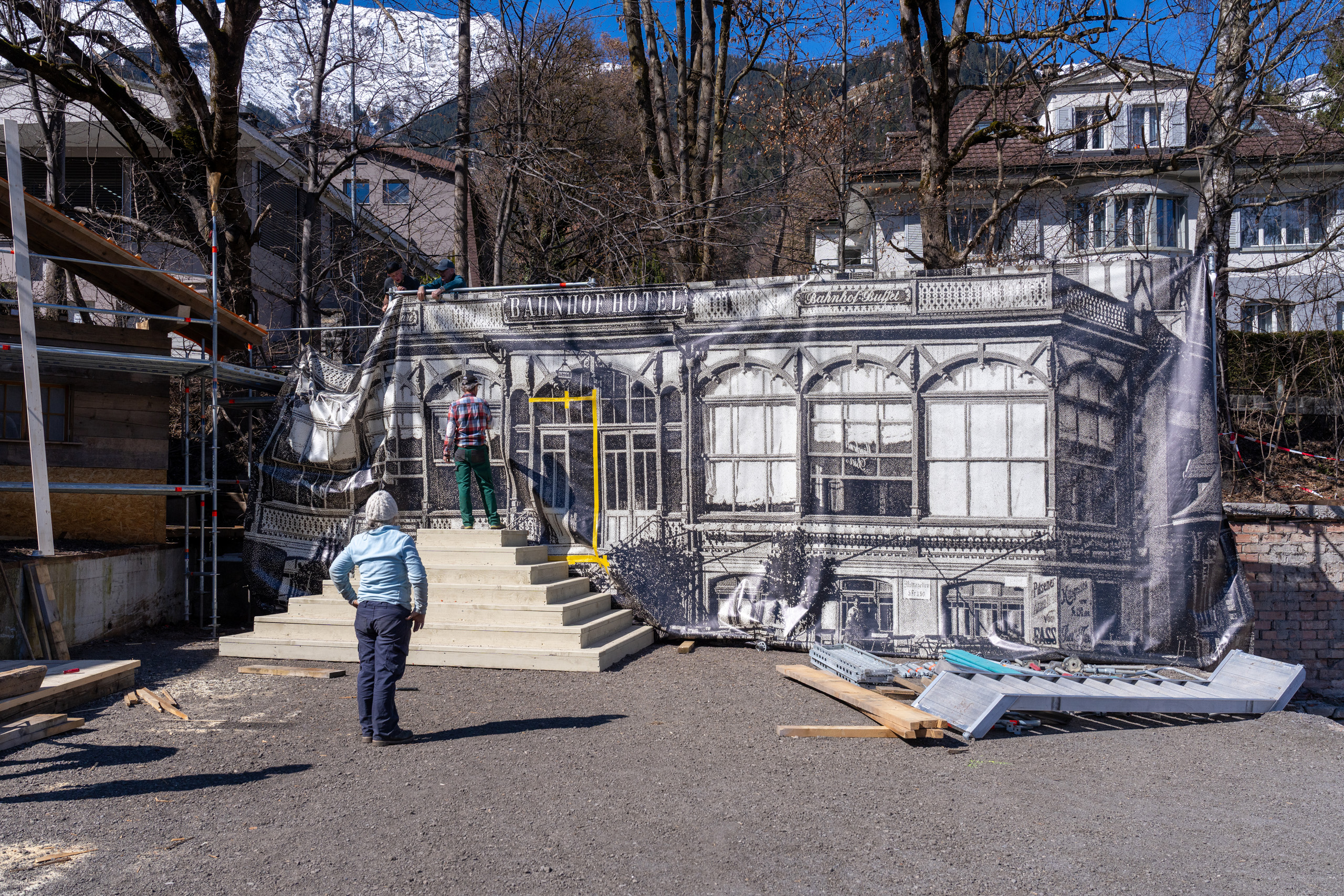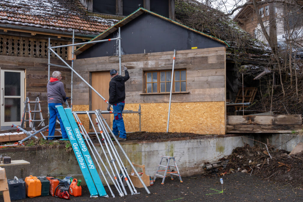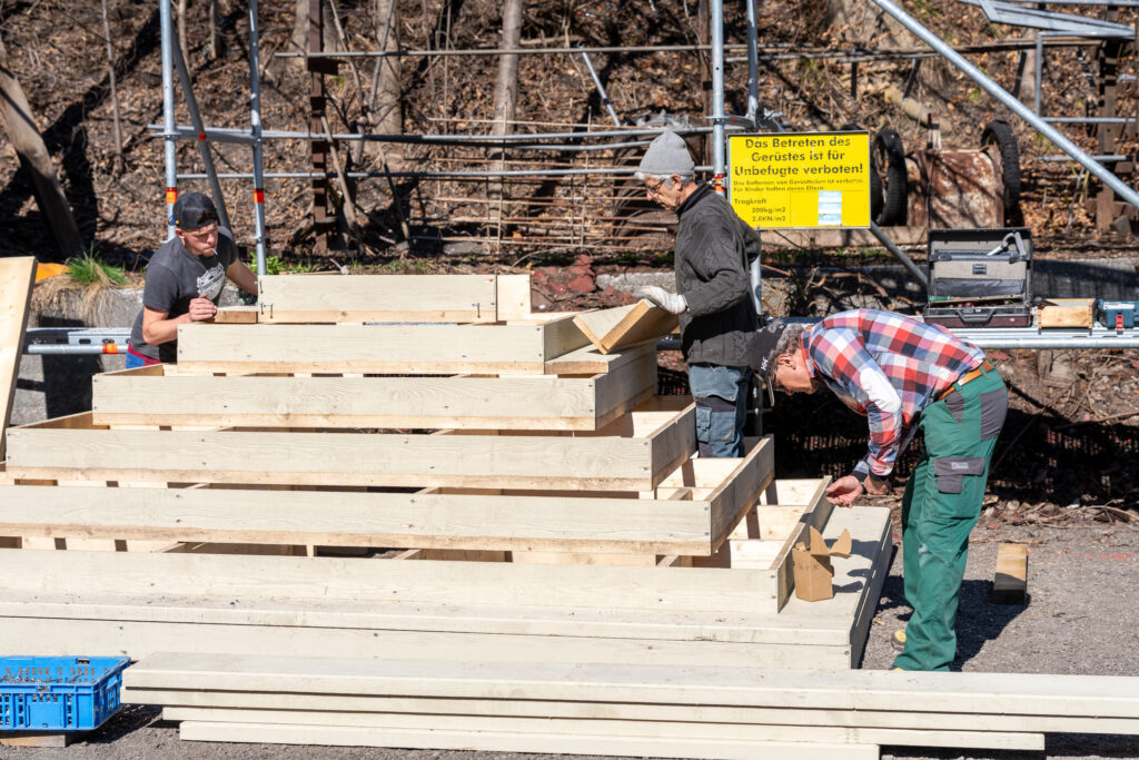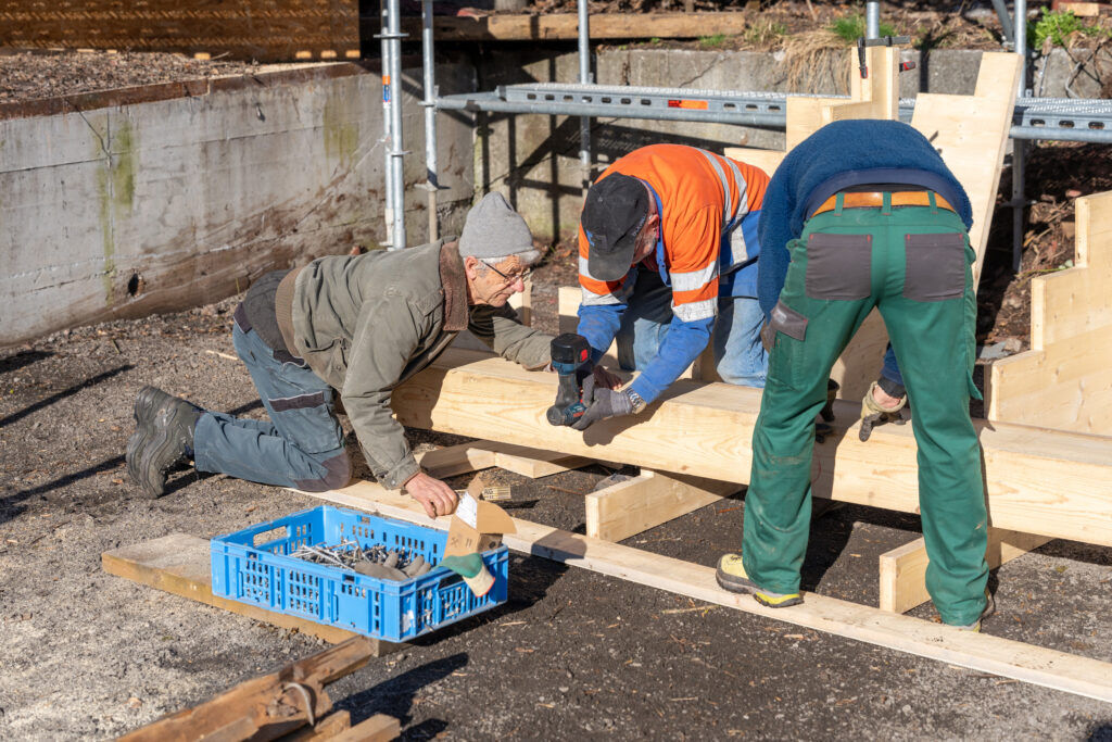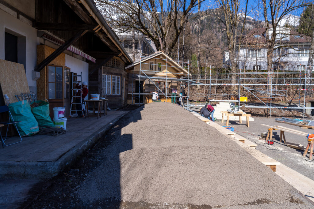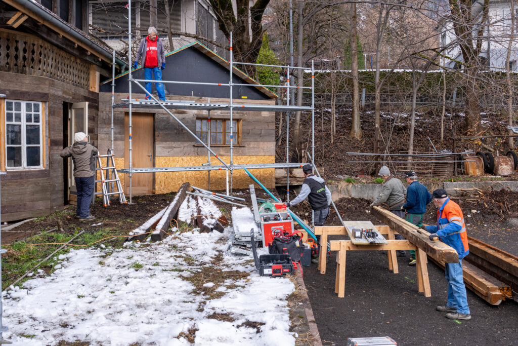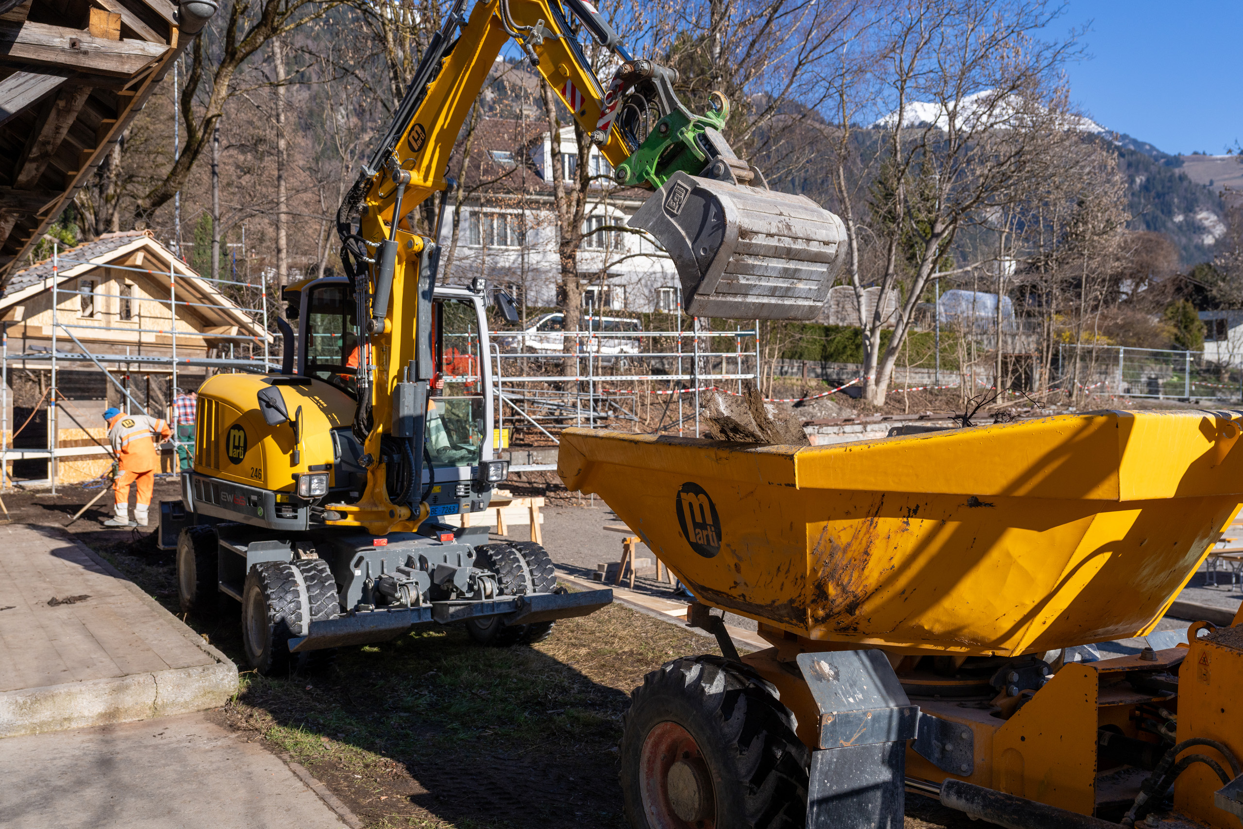Nach einer intensiven Bauwoche ist das Bühnenbild für das Freilichttheater einen grossen Schritt weitergekommen: Einheimische Firmen und freiwillige Helfende verwandelten den Platz in eine vielseitige Kulisse mit Hotel, Bäckerei, Sportgeschäft und Gemeindehaus. Dank schönem Wetter und starkem Teamgeist blicken alle Beteiligten zufrieden zurück – die Vorfreude auf die Proben und Aufführungen sind gross.
