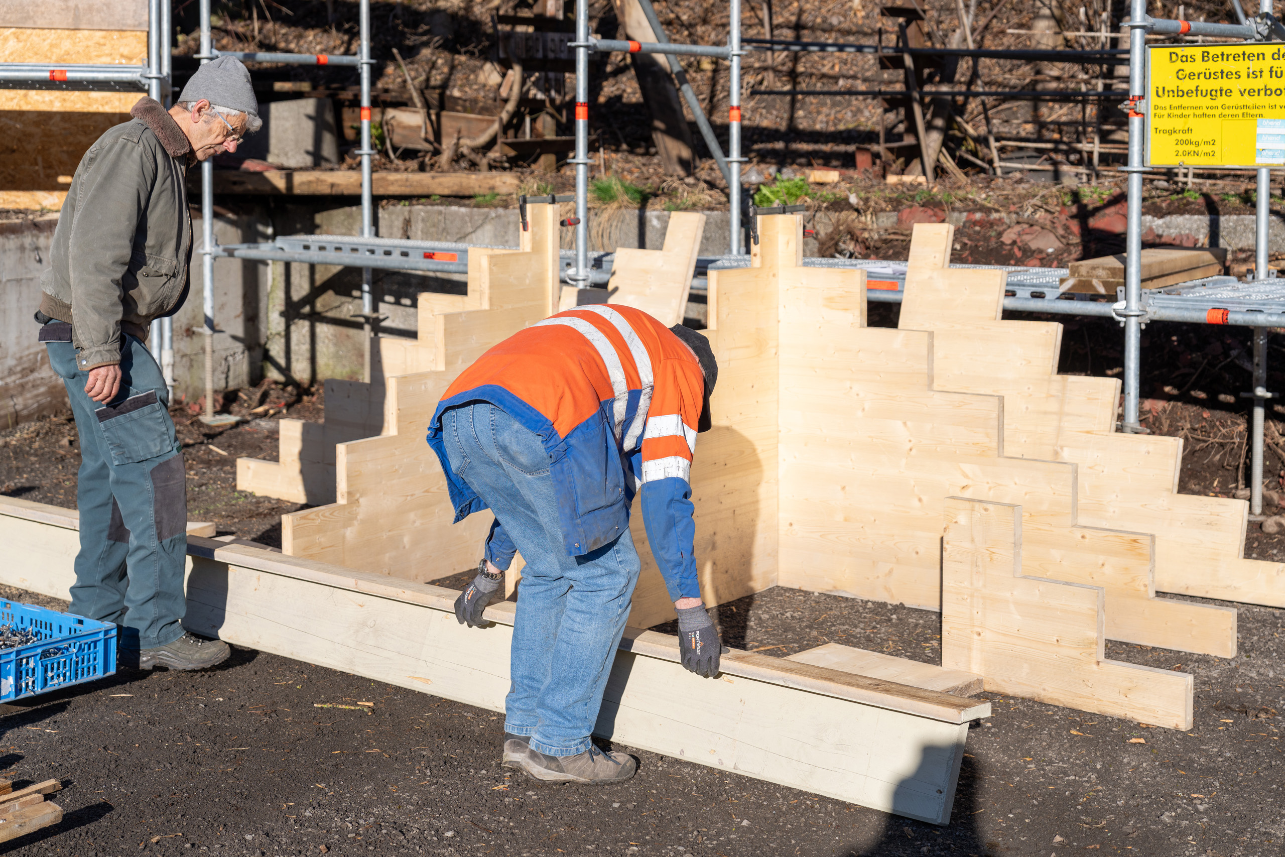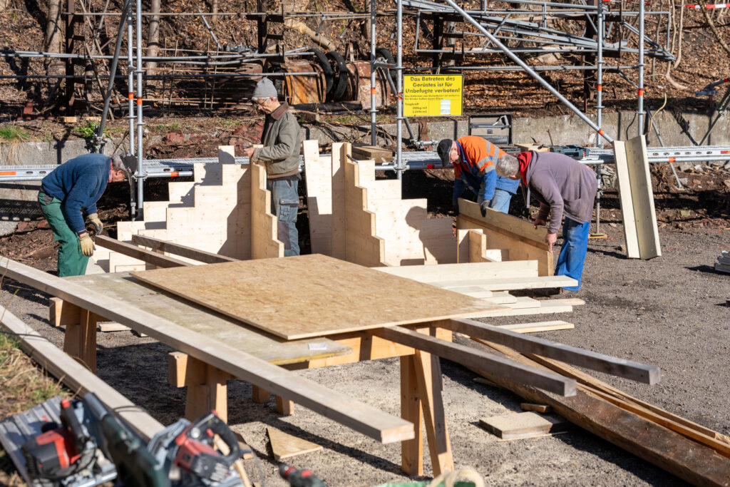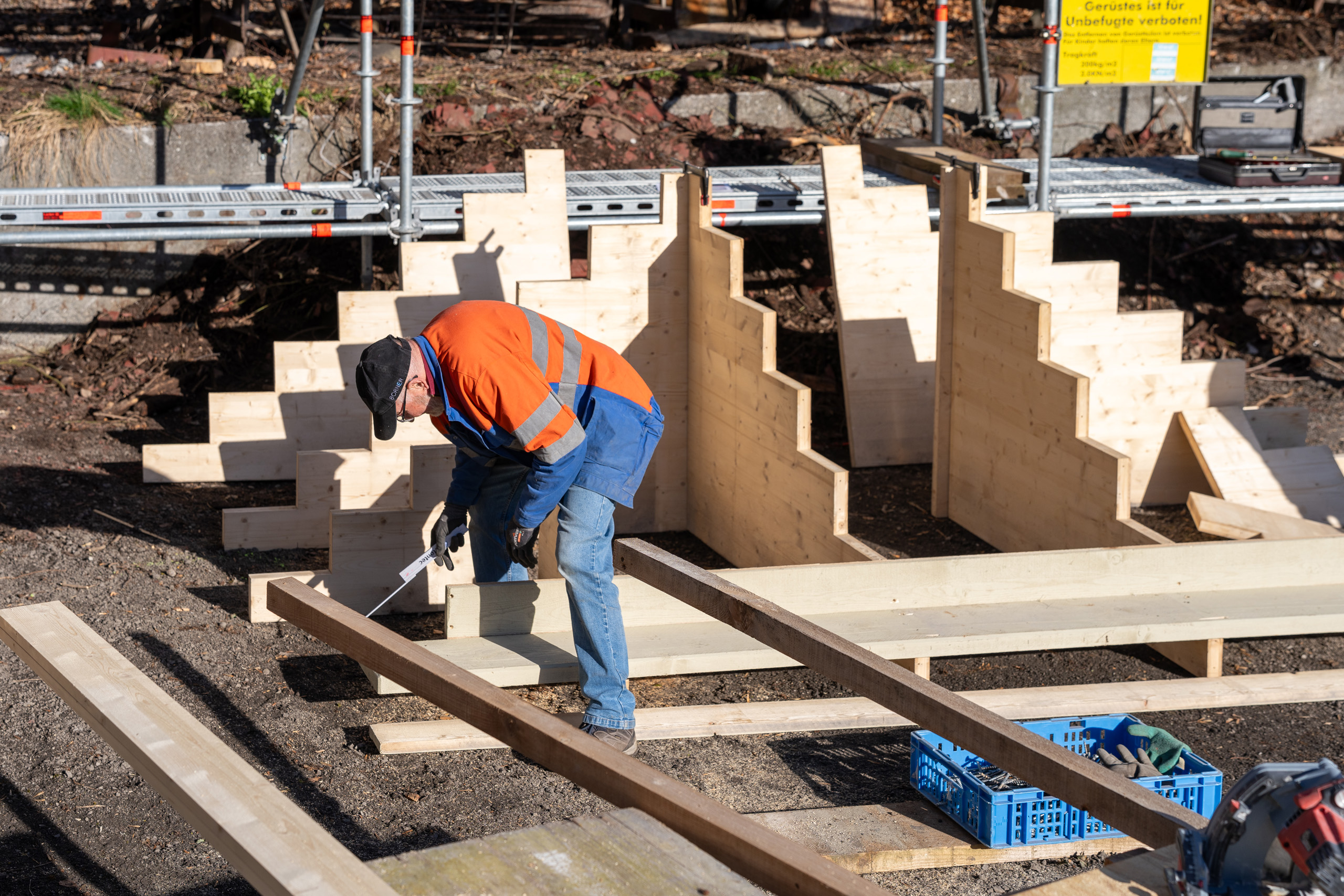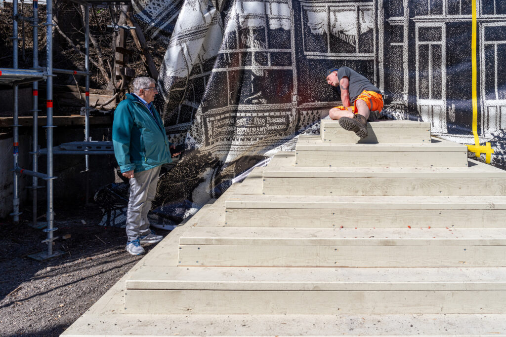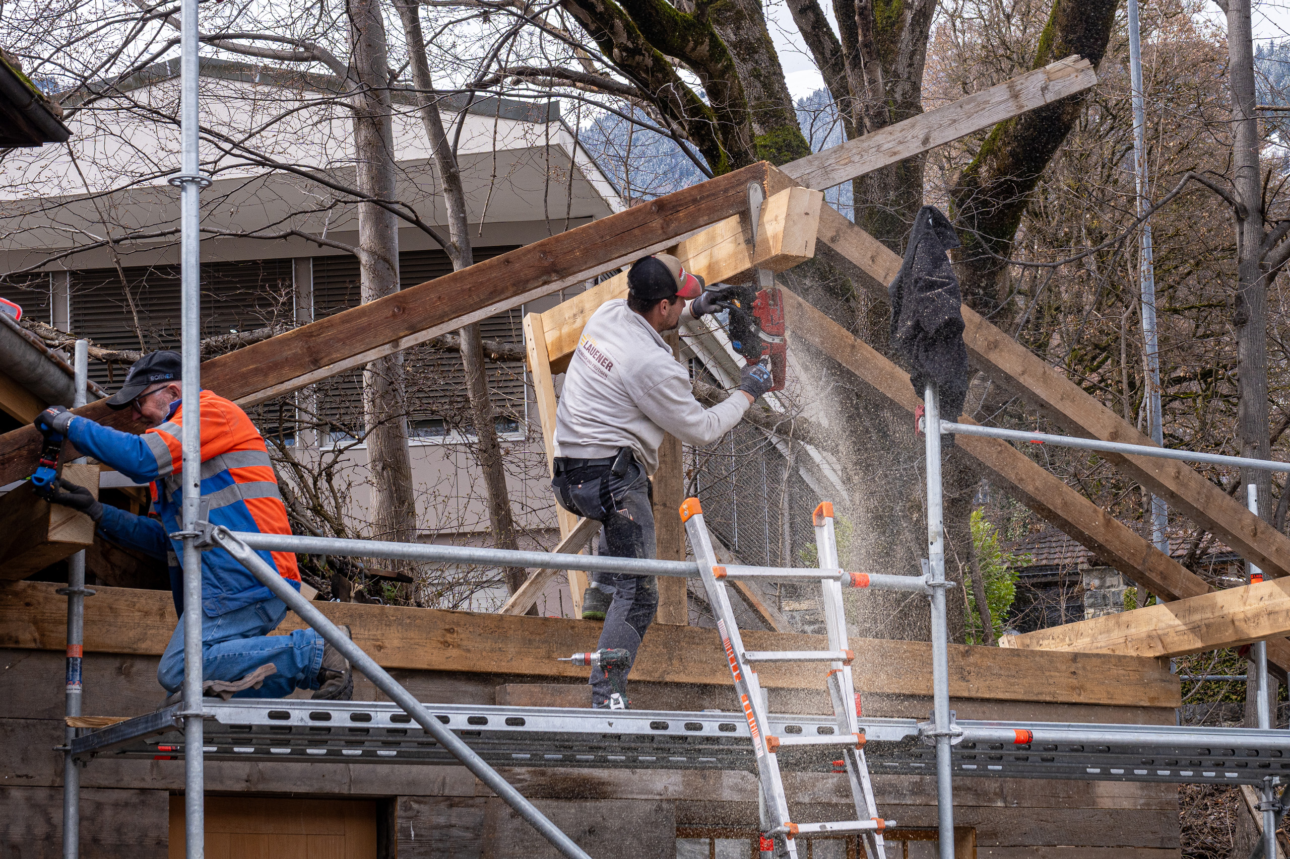 Nach einer intensiven Bauwoche ist das Bühnenbild für das Freilichttheater einen grossen Schritt weitergekommen: Einheimische Firmen und freiwillige Helfende verwandelten den Platz in eine vielseitige Kulisse mit Hotel, Bäckerei, Sportgeschäft und Gemeindehaus. Dank schönem Wetter und starkem Teamgeist blicken alle Beteiligten zufrieden zurück – die Vorfreude auf die Proben und Aufführungen sind gross.