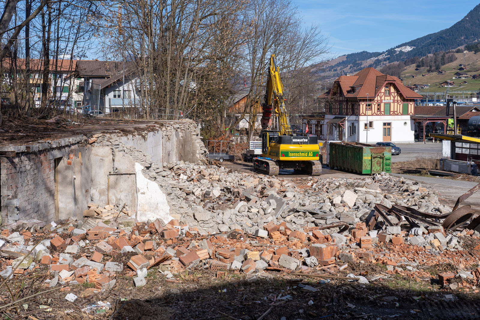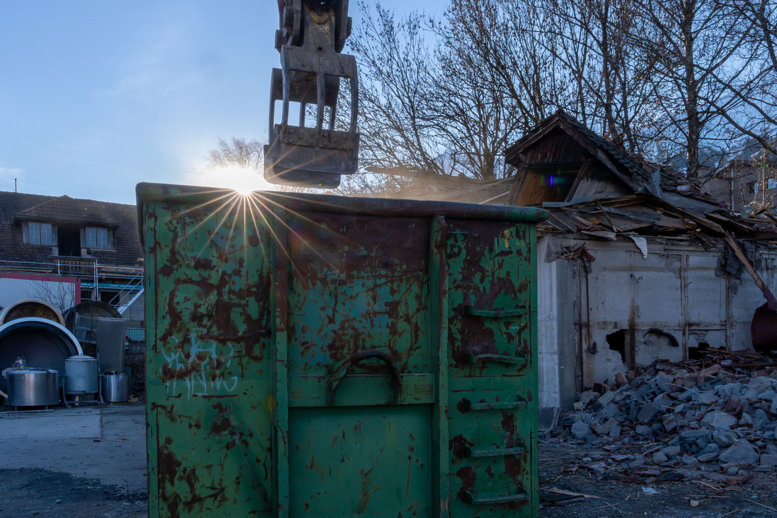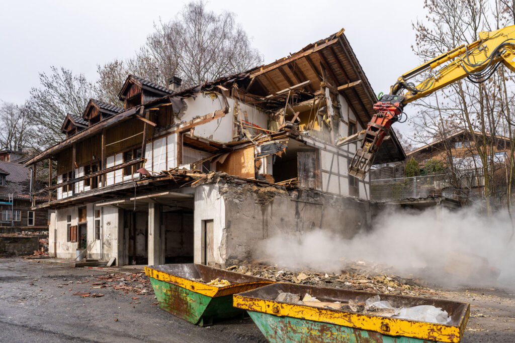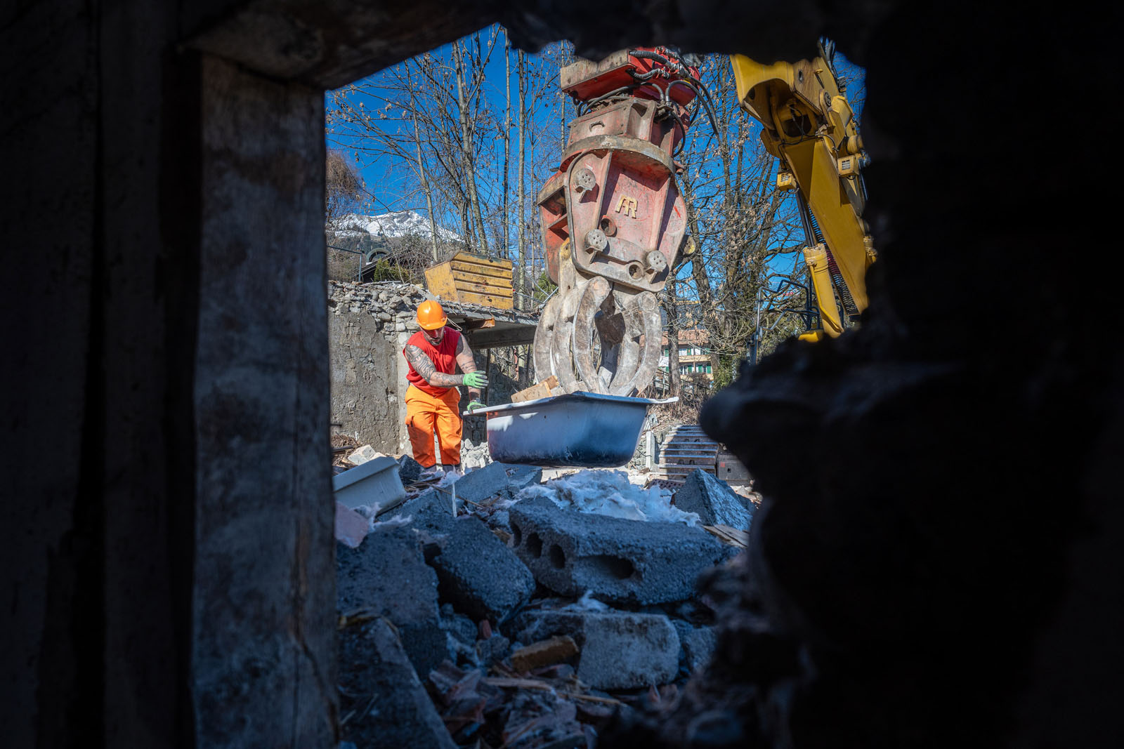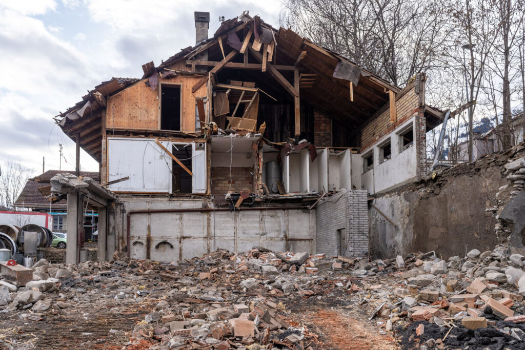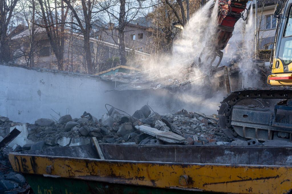 Innerhalb einer Woche wurde das «Julianihaus» durch die Firma «Isenschmid» fachgerecht zurückgebaut. Der Baggerführer, bekannt als «Bagger Walä», stellte dabei sein aussergewöhnliches Können eindrücklich unter Beweis. Mit höchster Präzision löste er – beinahe wie ein Chirurg – Balken für Balken und Bauteil für Bauteil aus dem Gebäude und trennte die Materialien mit Hilfe seines Mitarbeiters Filip sorgfältig und umweltgerecht in die dafür vorgesehenen Container.