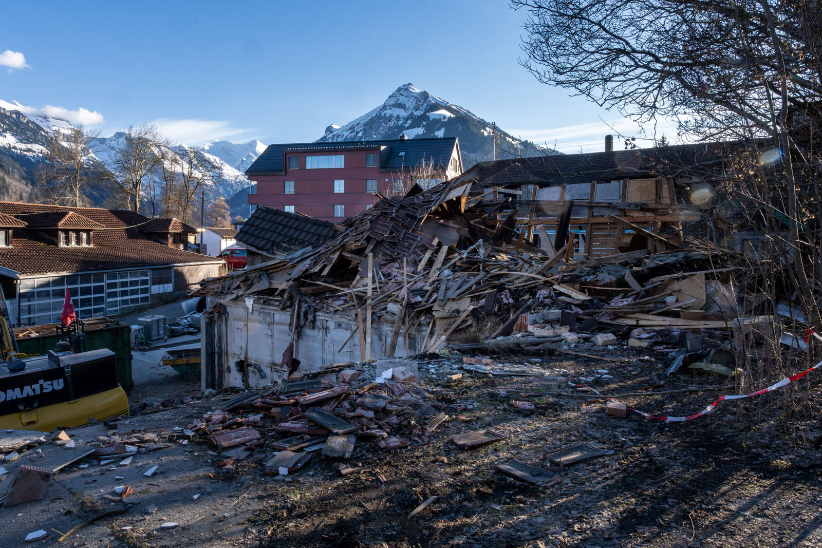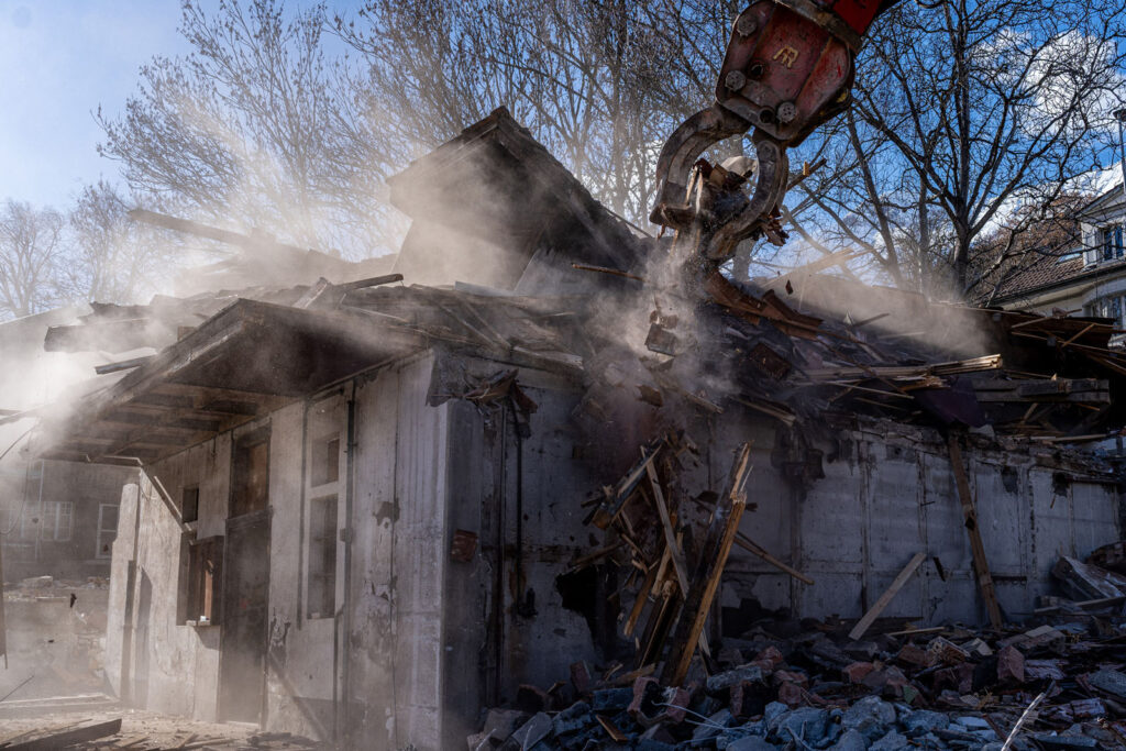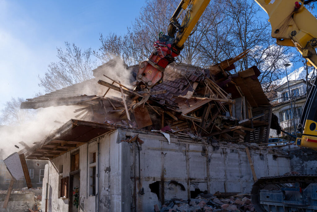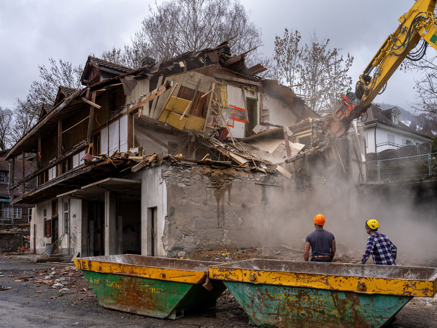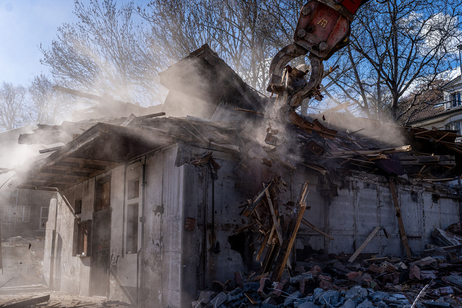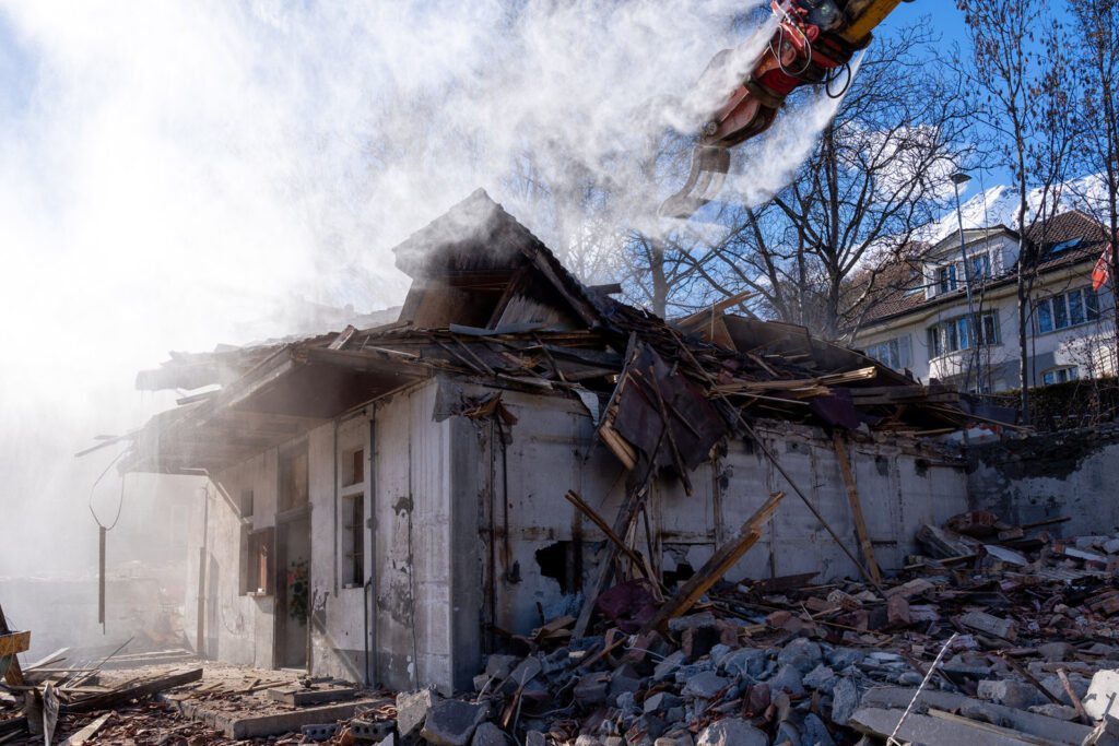 Innerhalb einer Woche wurde das «Julianihaus» durch die Firma «Isenschmid» fachgerecht zurückgebaut. Der Baggerführer, bekannt als «Bagger Walä», stellte dabei sein aussergewöhnliches Können eindrücklich unter Beweis. Mit höchster Präzision löste er – beinahe wie ein Chirurg – Balken für Balken und Bauteil für Bauteil aus dem Gebäude und trennte die Materialien mit Hilfe seines Mitarbeiters Filip sorgfältig und umweltgerecht in die dafür vorgesehenen Container.