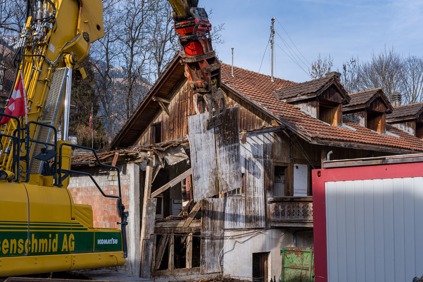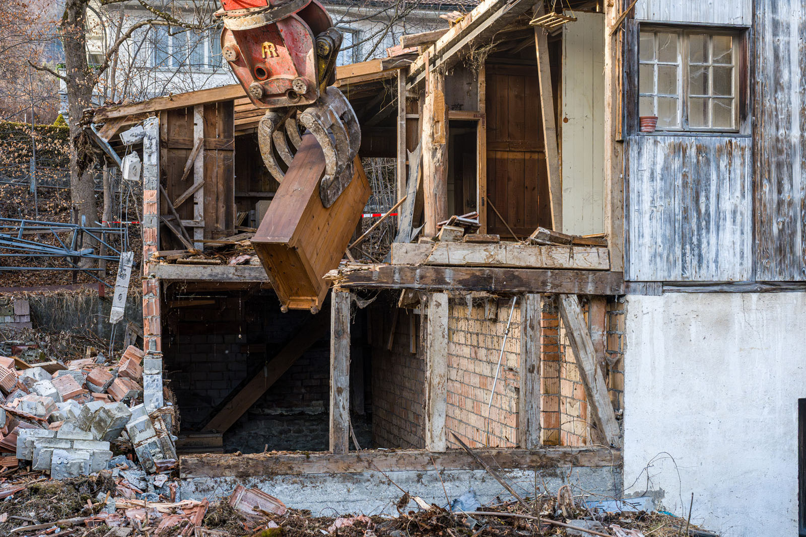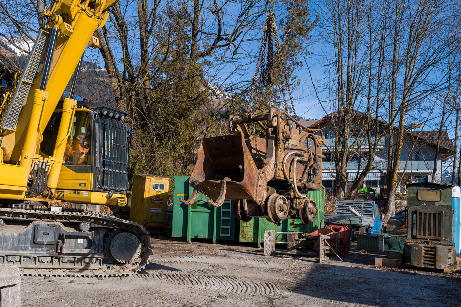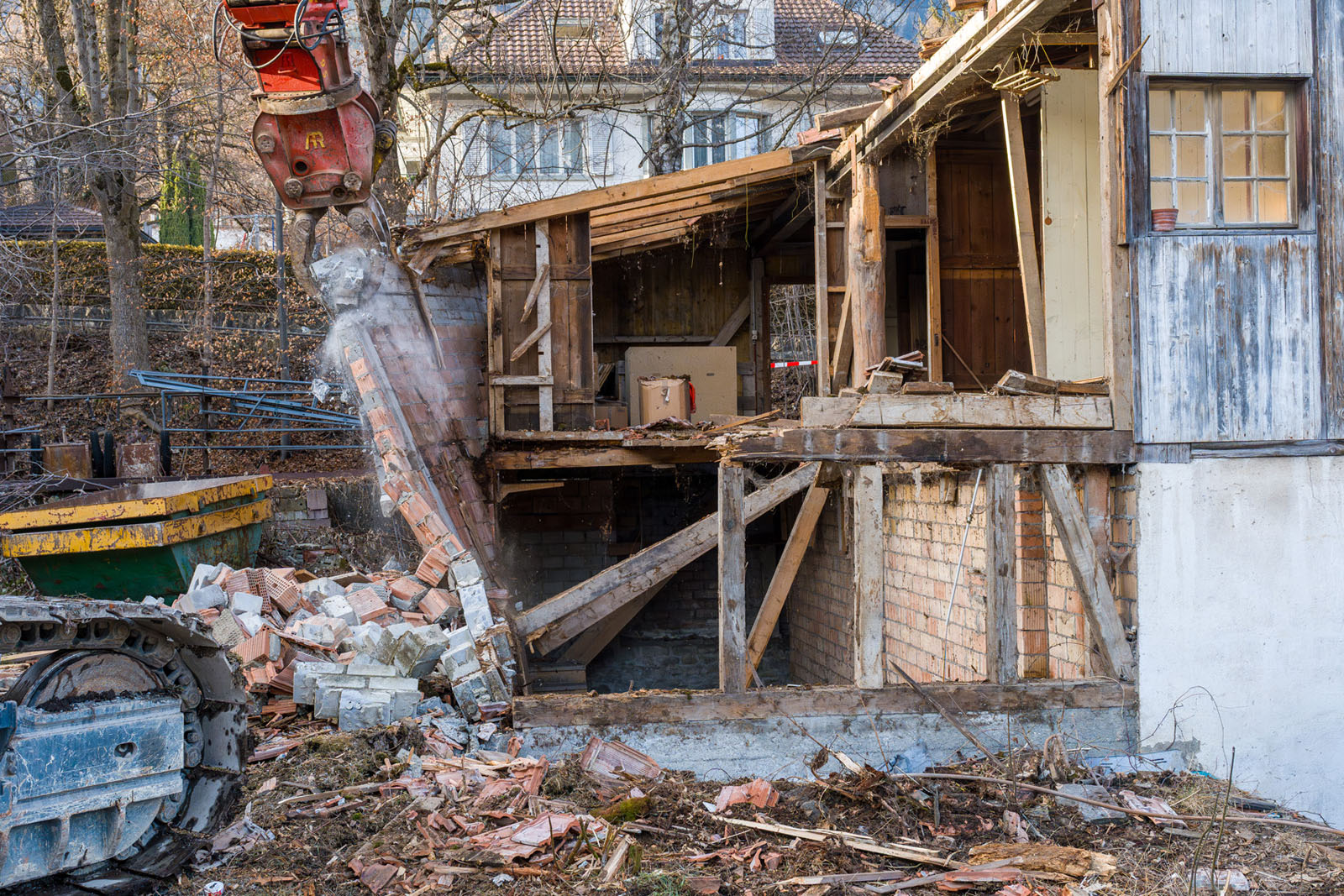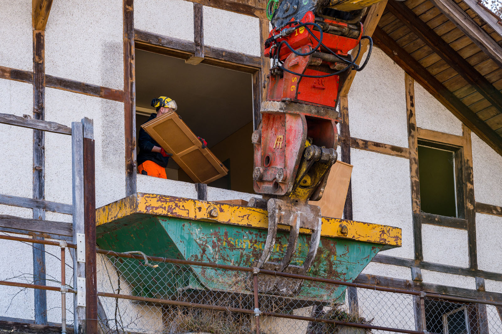 Das «Julianihaus» ist seit den 1990er Jahren unbewohnt und wurde nur noch zum Einlagern diverser Materialien genutzt, welche nun entsorgt werden: Wie Sie auf den Bildern sehen können, brauchte es für die schweren Trouvaillen einen Bagger.